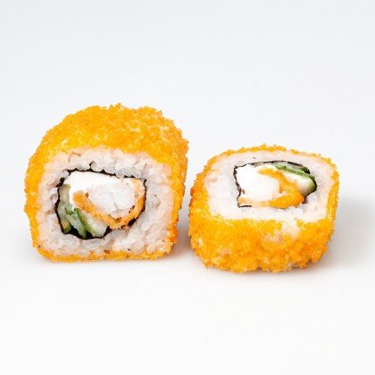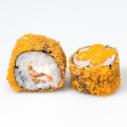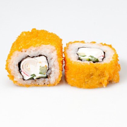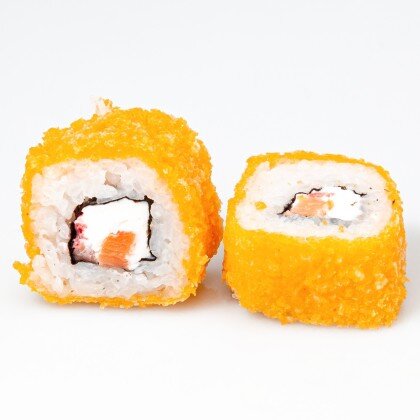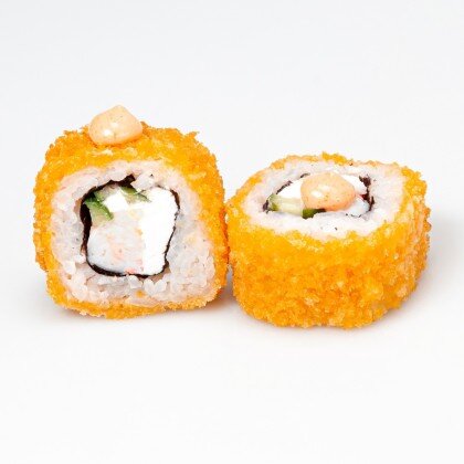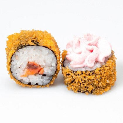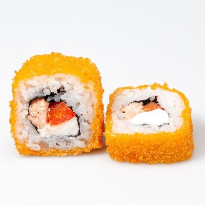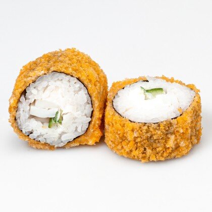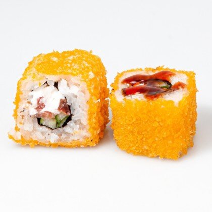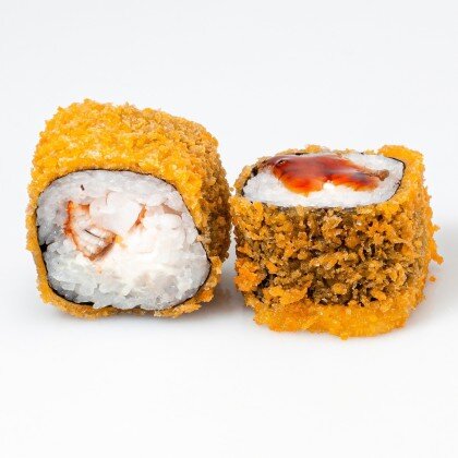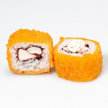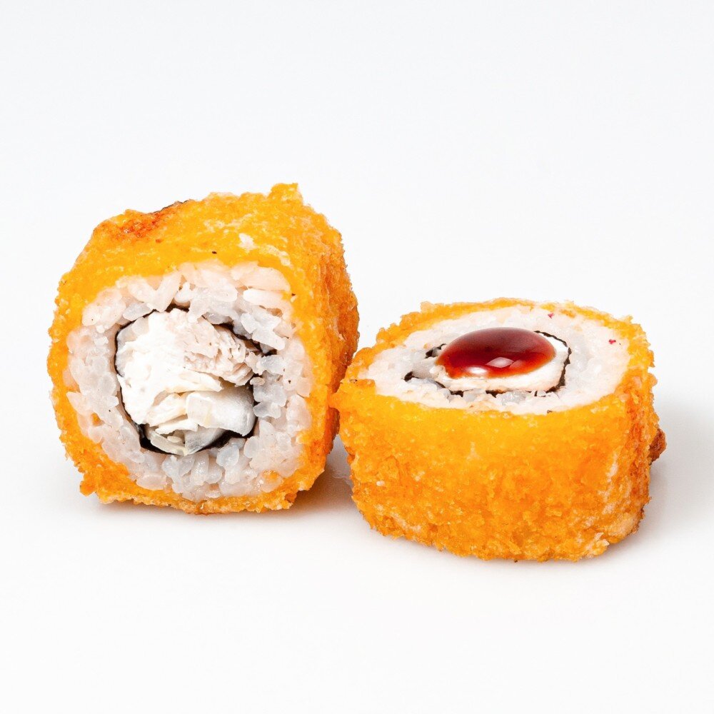 Сливочный сыр, рис,курочка жареная, Пекинская капуста, кляр, «Панко», полит соусом «Унаги».