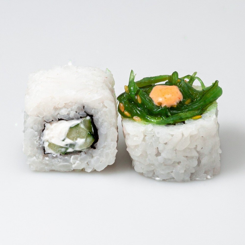 Сыр,рис, огурец, водоросли "Чукка", соус спайси