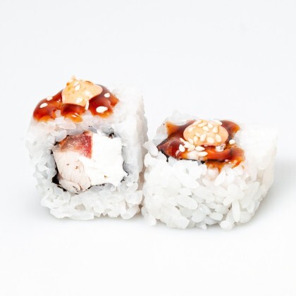 Сливочный сыр, креветка, огурец, красная «Масаго».
