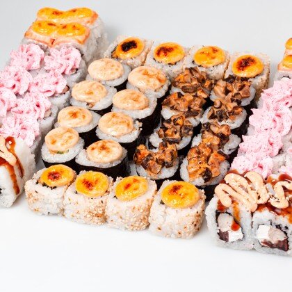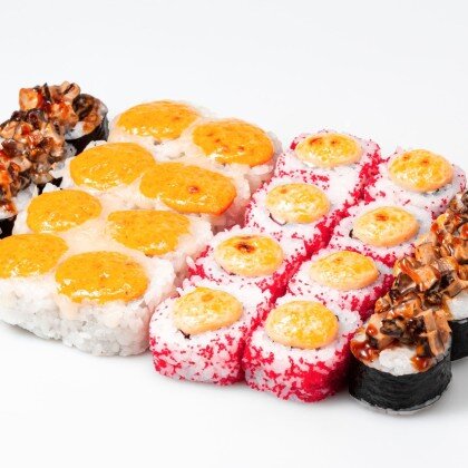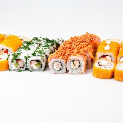 Филадельфия мини - 2, Калифорния с креветкой, Гейша маки, Магуро Хосо Маки