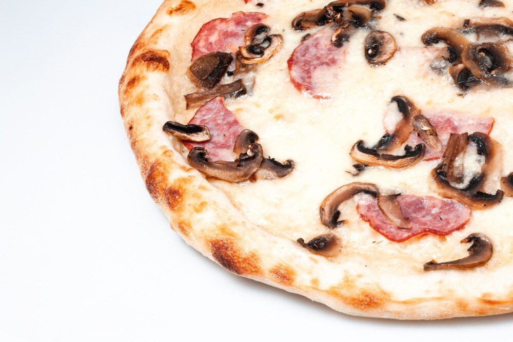 Сливочный соус, моцарелла, ветчина, шампиньоны