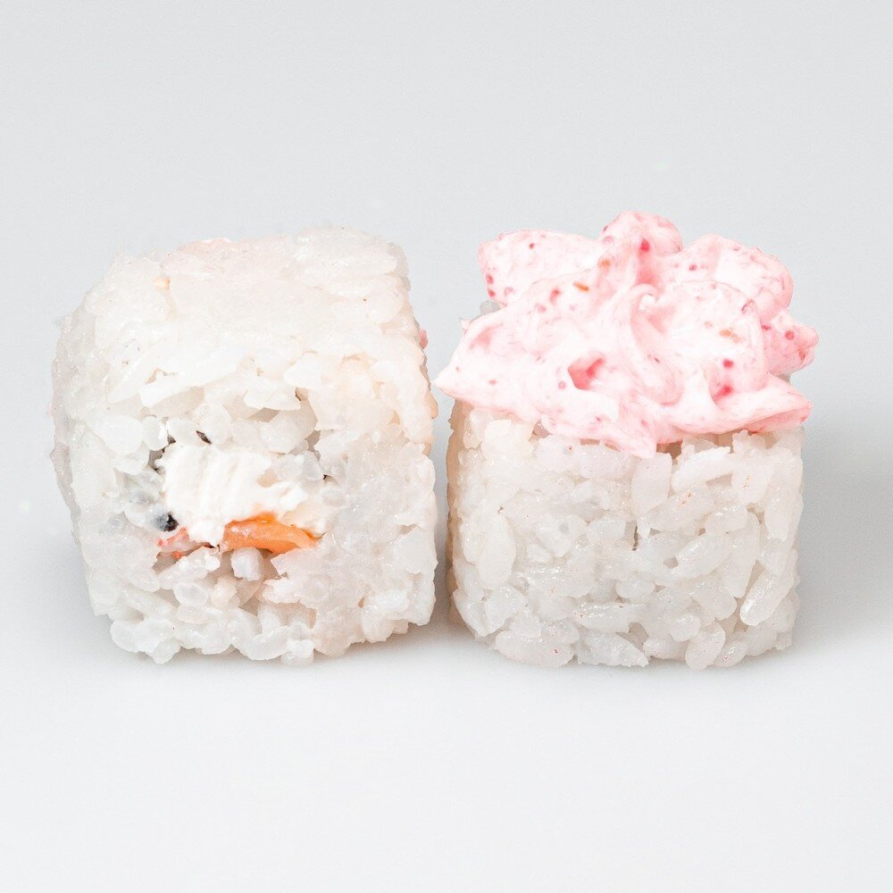Рис,сливочный сыр, лосось, креветка, соус «Лава»