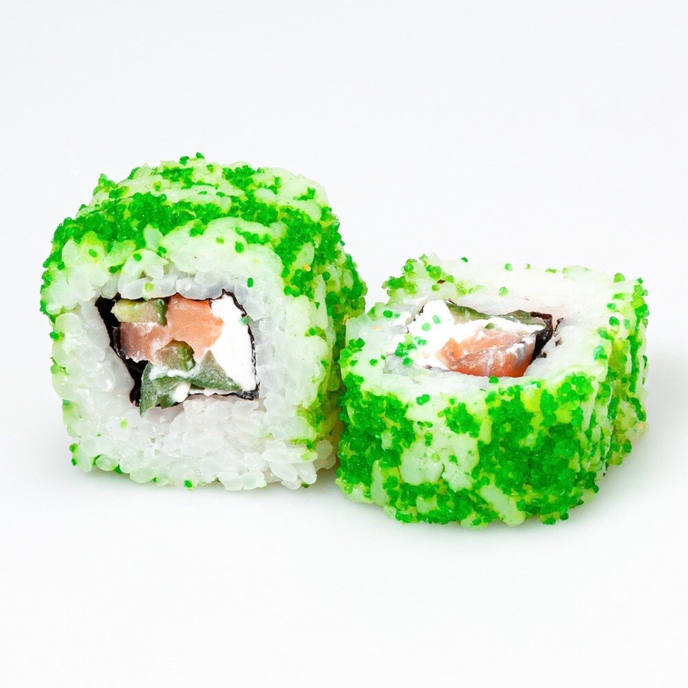 Сливочный сыр,рис, лосось, огурец, зеленая икра "Масаго".