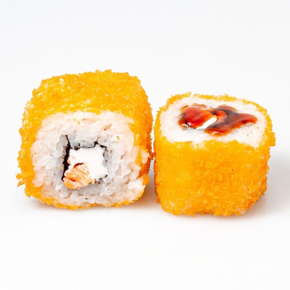 Сливочный сыр, рис,лосось "Терияки", кляр, сухари "Панко", полит соусом "Унаги"